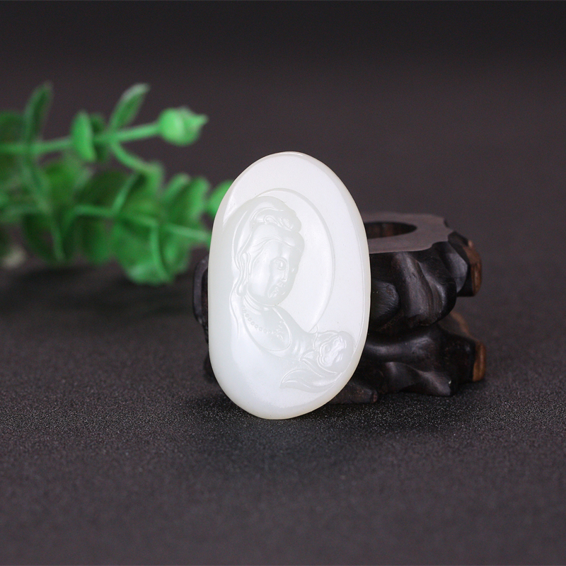 Jade is dense, oily and delicate, comfortable to the touch, clean and transparent, three-dimensional carving, square and grand, full of texture, comfortable to wear, and Guanyin Bodhisattva has kind eyebrows and kind eyes, leisurely and refined.