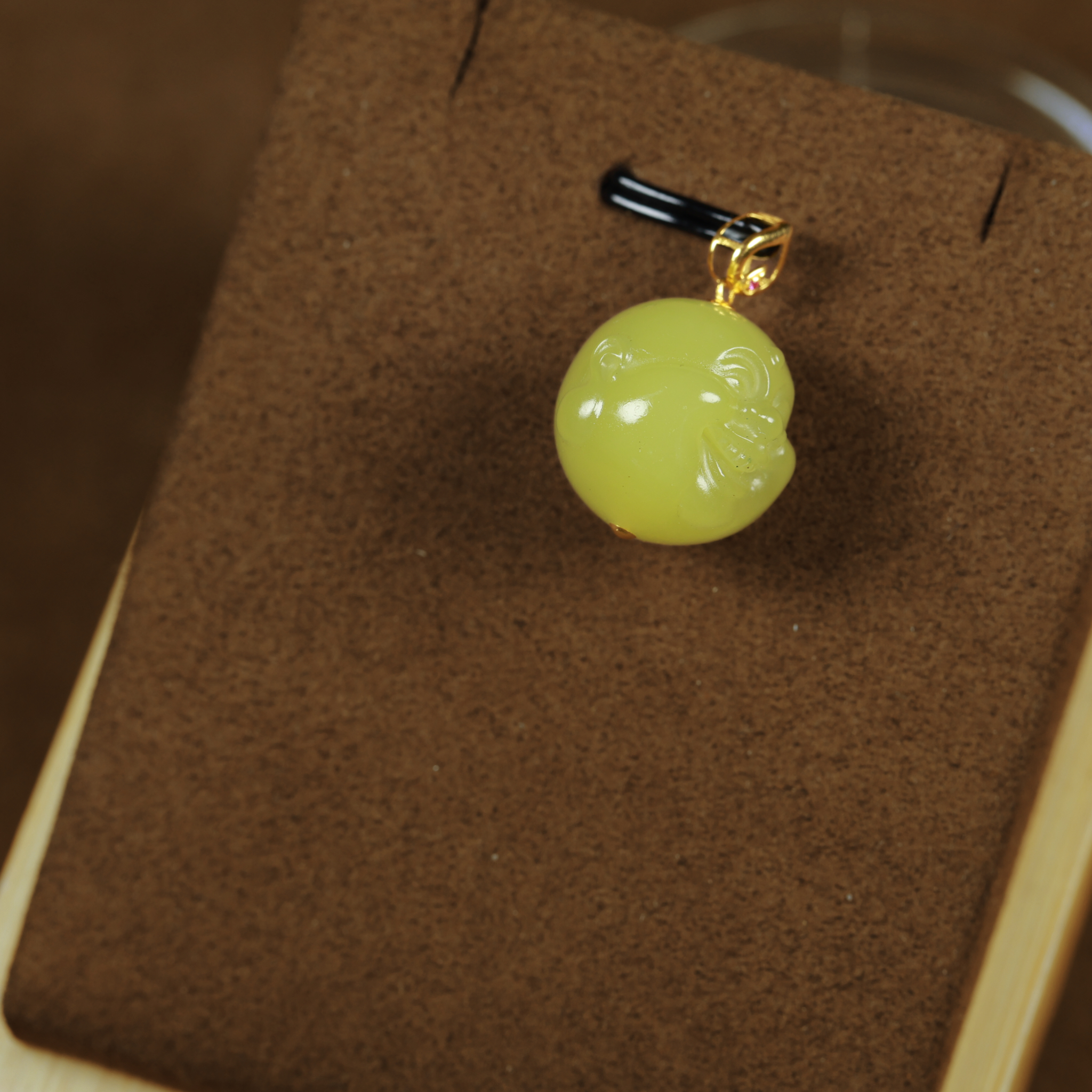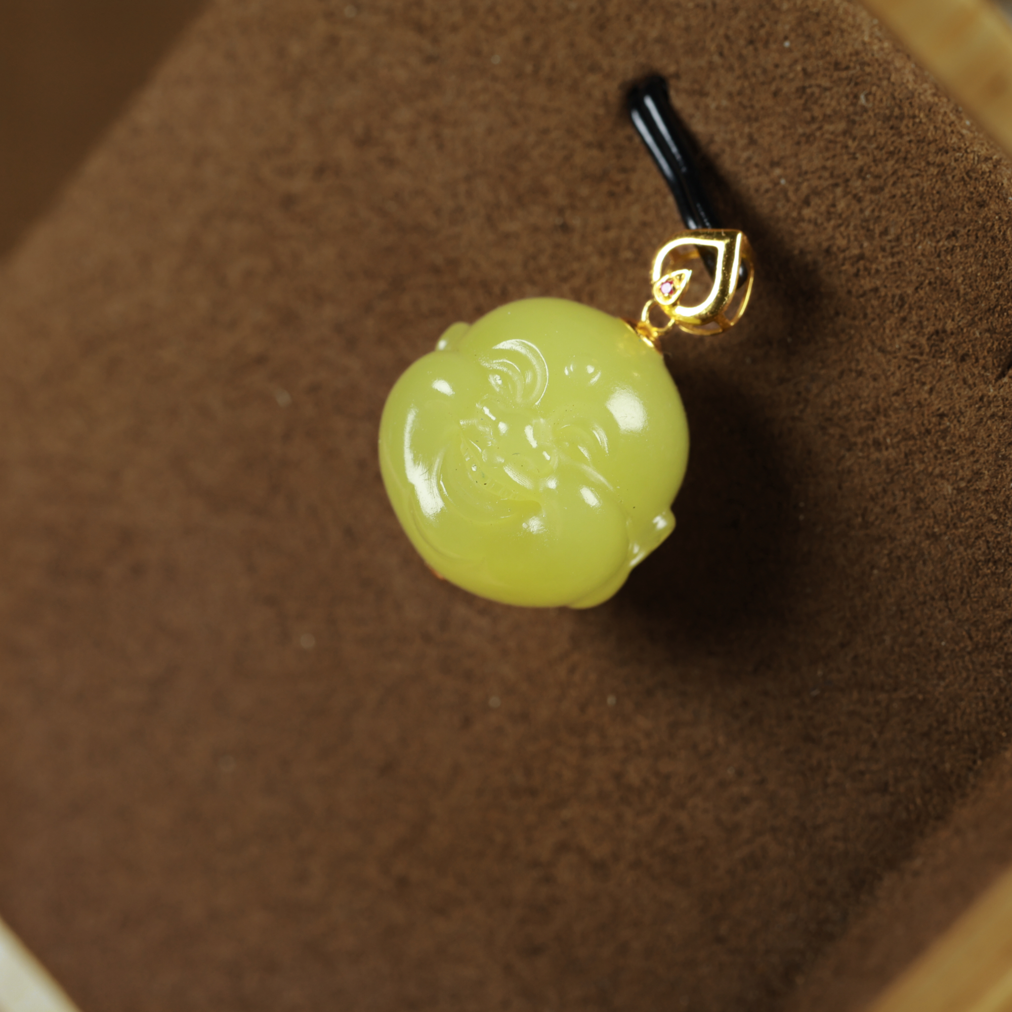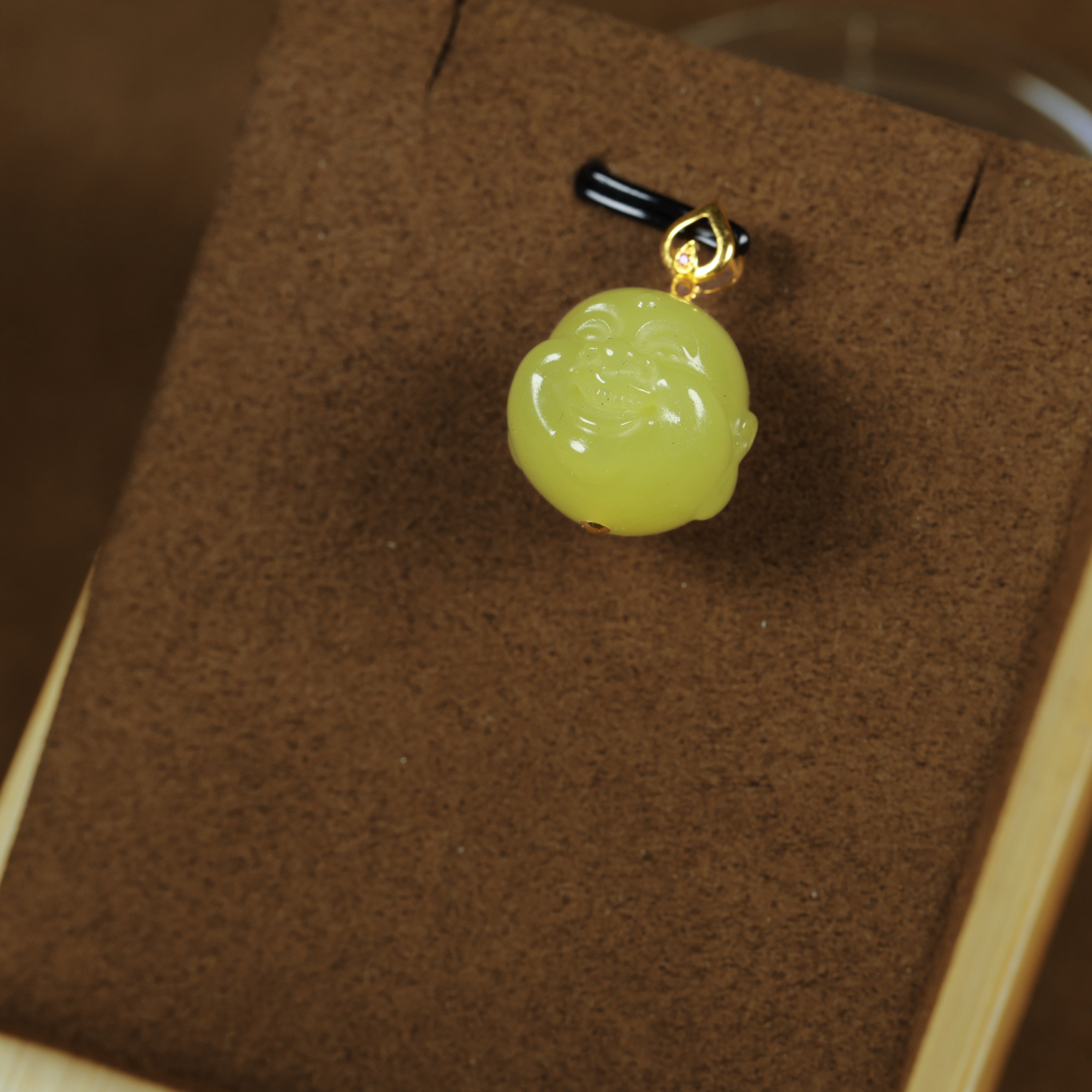 这款和田玉K金黄玉立体小佛,质感温润、料脂细润,鸡油黄
