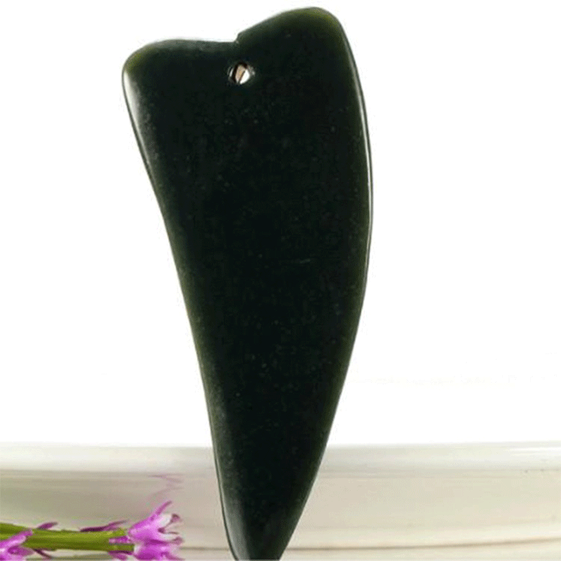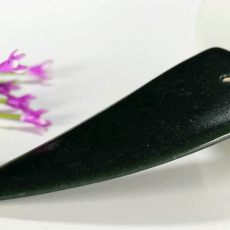 这是一块和田玉制成的刮痧板, 可用于按摩脸部和颈部, 促进血液循环,减少脸部的浮肿,同时可以提拉、定型、雕刻脸部,这款刮痧板方便携带, 而且不像电动刮痧板需要充电, 这款不需要充电,非常方便耐用。