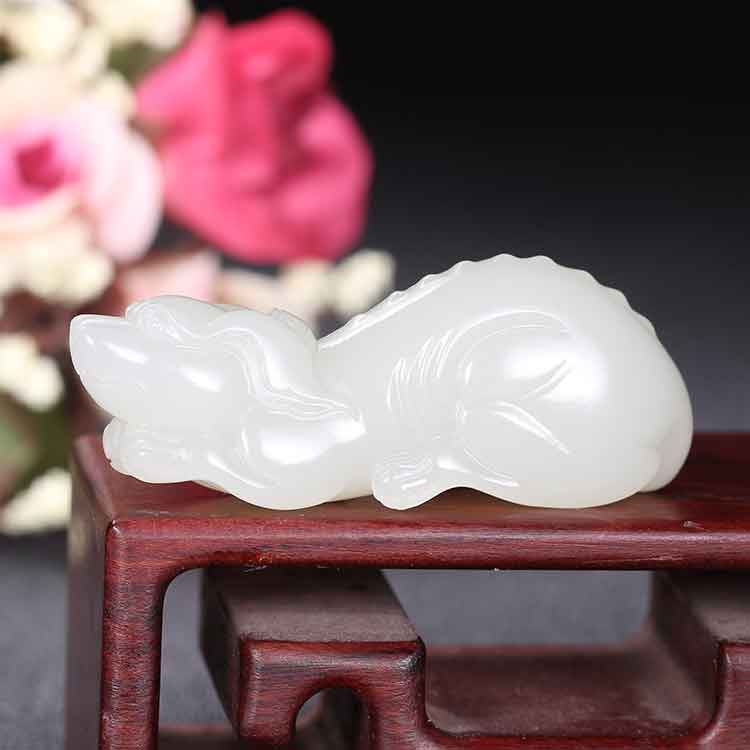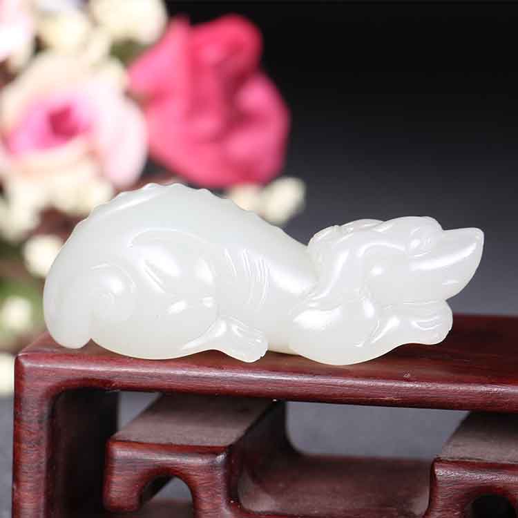 jade dog made of Hetian white jade together, implying loyalty to each other and a happy relationship.