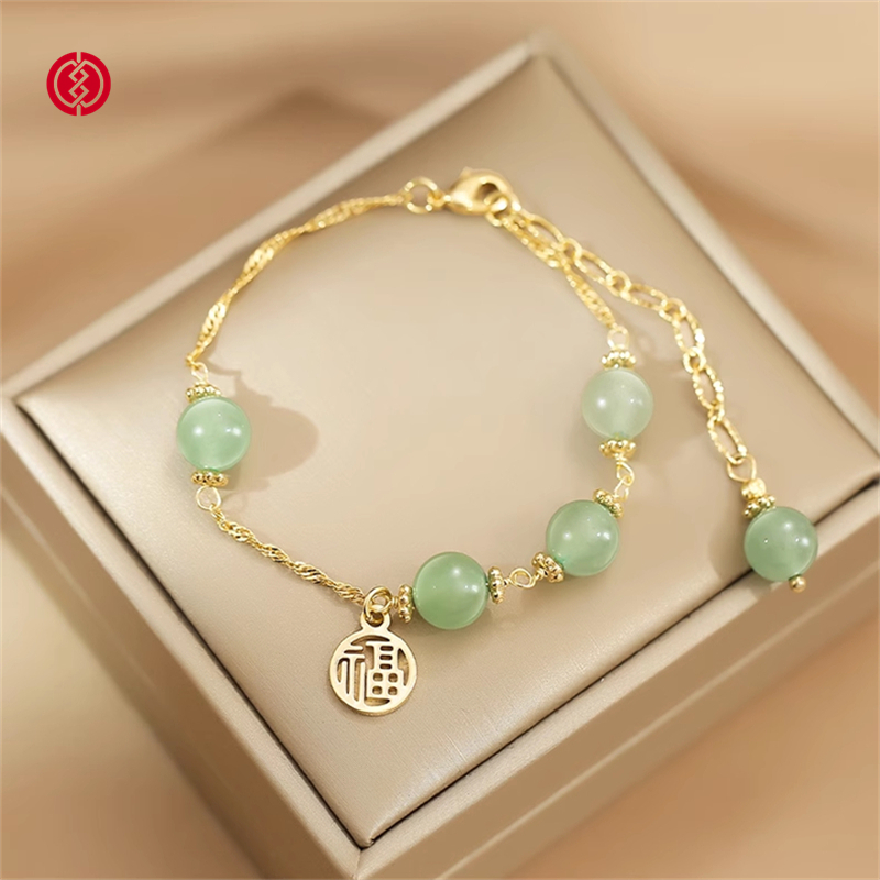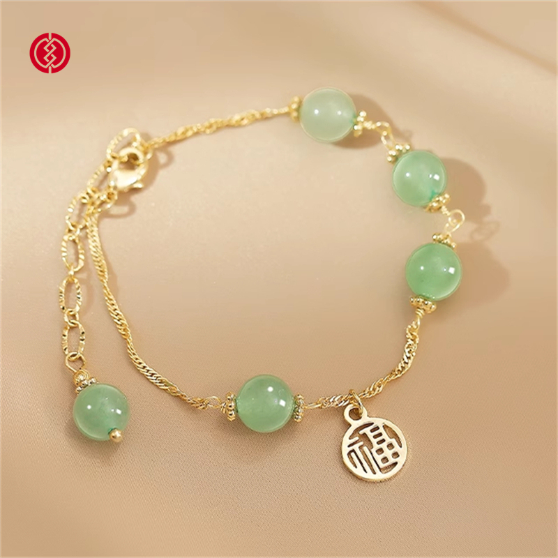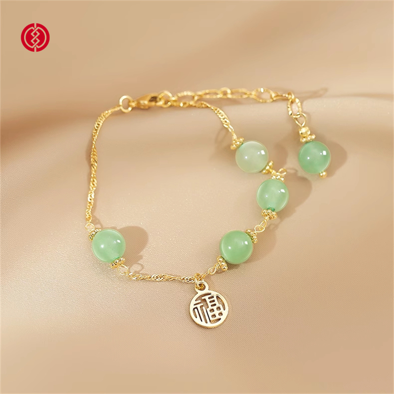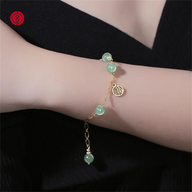 温婉的醉人碧玉, 化身转运玉珠的祈福祝愿, 镂空福牌吊坠,象征着好运不断福运相伴。