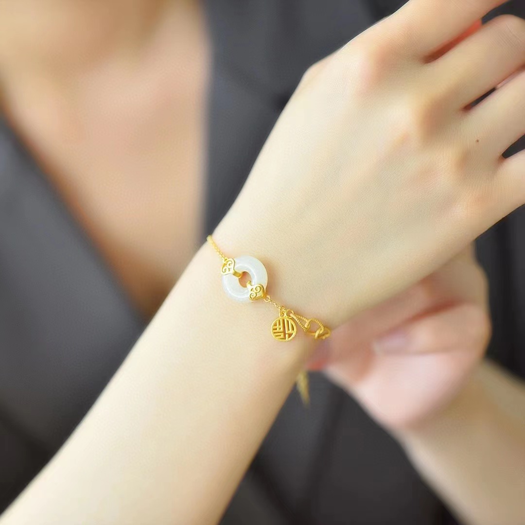 Product name: Hetian Jade Ping An Huanfu Ruyi bracelet Material: Hetian Jade Specification: subject to the actual object received Weight: about 5g